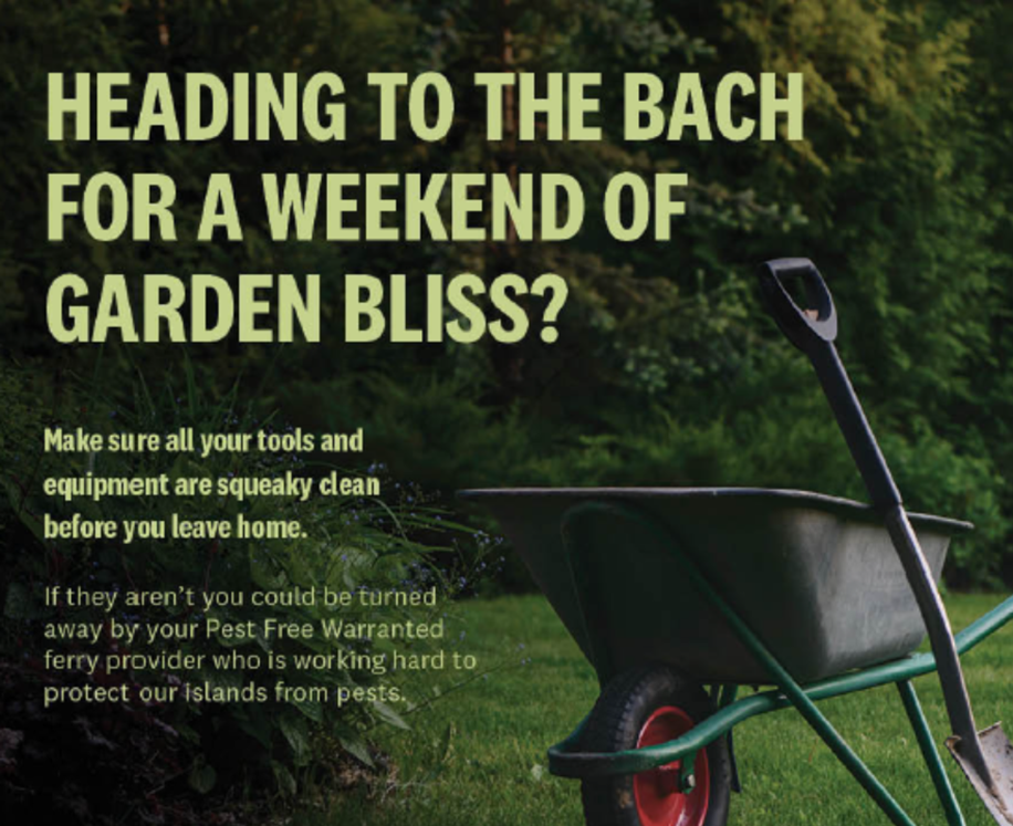 - Leave a dedicated set of tools and boots at the bach so you’re not bringing unwanted weeds from the mainland.
